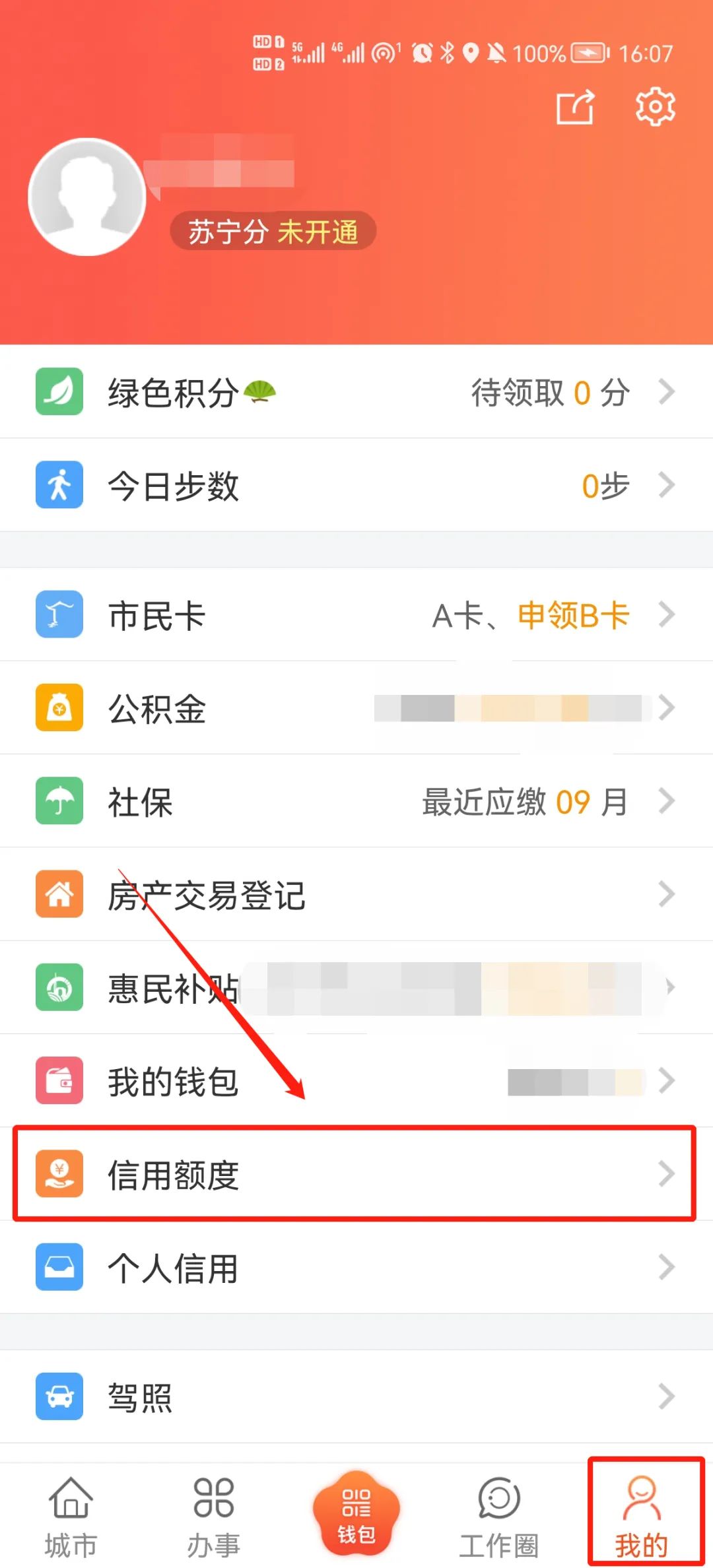 2、點擊“我的頁面—信用額度”,再點擊“經(jīng)營隨e貸”立即申請按鈕,即可進入申請頁面。