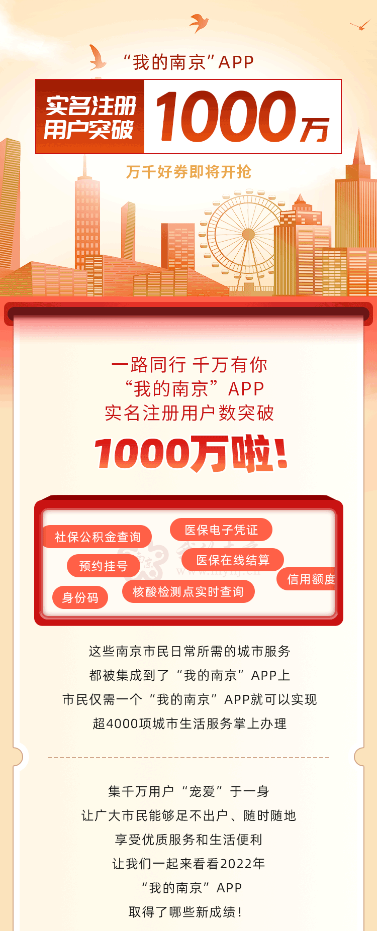 “我的南京”APP實(shí)名注冊(cè)用戶突破1000萬啦!看到底,有福利喲~~